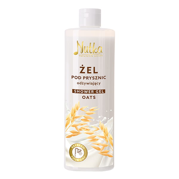 Żel pod prysznic owies. Odżywiający i nawilżający żel pod prysznic i do kąpieli o delikatnym, kremowym zapachu, wzbogacony ekstraktem z owsa, który wspiera działanie antyoksydacyjne i odżywcze - Nutka.