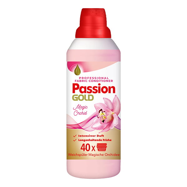 Perfumowany, zmiękczający koncentrat do płukania tkanin Passion Gold, o świeżym magicznej orchidei.