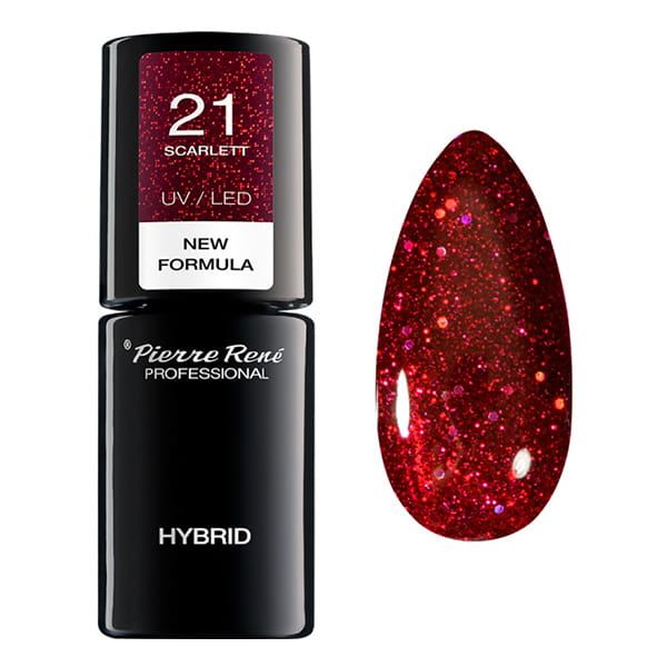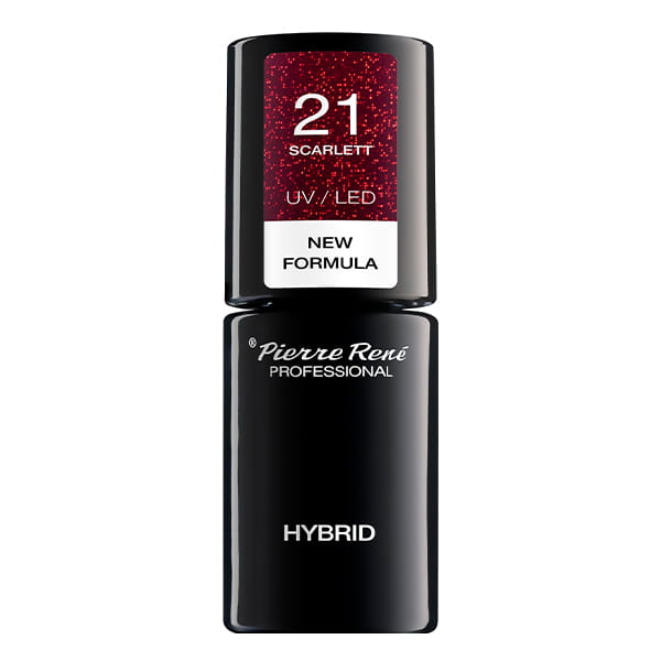 Kolorowy lakier hybrydowy, zapewnia nieskazitelny manicure do 21 dni. Specjalna formuła zmniejsza ryzyko zalewania skórek oraz alergii - Pierre Rene Hybrid.