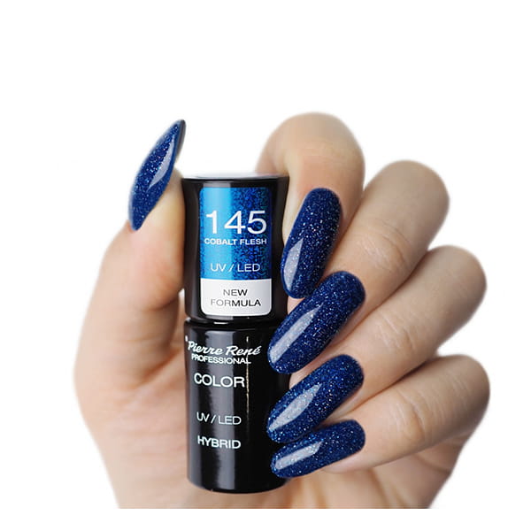 Lakier hybrydowy o mieniących się odcieniach zapewnia nieskazitelny manicure do 21 dni. Specjalna formuła zmniejsza ryzyko zalewania skórek oraz alergii - Pierre Rene Hybrid.