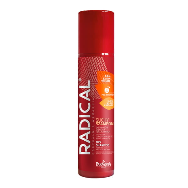 Suchy szampon do włosów cienkich i delikatnych, nadający im natychmiastowego odświeżenia i zwiększonej objętości, a zawarte w nim składniki aktywne wzmacniają, niwelują nieprzyjemny zapach i redukują nadmiar sebum na skórze głowy - Radical Dry Shampoo.