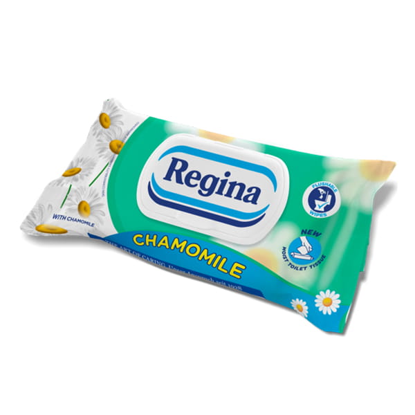 Nawilżany papier toaletowy Regina Chamomile to produkt o subtelnym zapachu zapewniający delikatną pielęgnację.