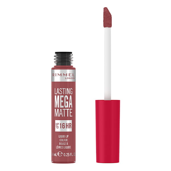 Długotrwała matowa pomadka do ust w płynie zawierająca megaelastyczne pigmenty, które wtapiają się w usta i pozwalają uzyskać intensywny kolor i obłędnie matowe wykończenie nawet do 16 godzin. Odporna na  na wodę, pocałunki i ścieranie - Rimmel Lasting Mega Matte.