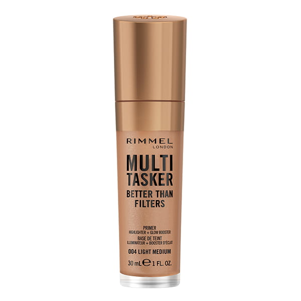Wielozadaniowy podkład 3w1 daje efekt promiennej i niesamowicie gładkiej cery. Baza, lekki podkład i rozświetlacz w jednym może być używany jako primer pod makijaż, lekki podkład do twarzy glowbooster punktowo lub na całą twarz i rozświetlacz - Rimmel Better Than Filters.