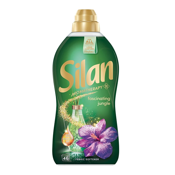 Płyn do zmiękczania tkanin Silan Aromatherapy Fascinating Jungle zapewnia długotrwałą świeżość i zapach tkanin.