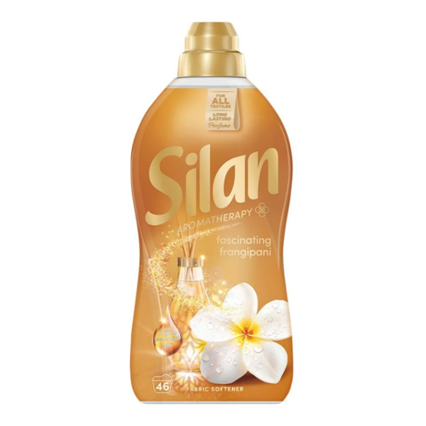 Płyn do zmiękczania tkanin Silan Aromatherapy Fascinating Frangipani zapewnia długotrwałą świeżość i zapach tkanin.