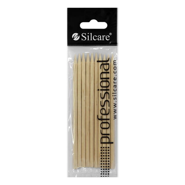 Silcare patyczki do manicure to zestaw 10 krótkich patyczków o długości około 11 cm, zaprojektowanych do wygodnego odsuwania skórek, oczyszczania płytki i precyzyjnych zdobień. Produkt jest trwały i długo się nie rozwarstwia, co czyni go praktycznym narzędziem zarówno w salonie, jak i w domu.