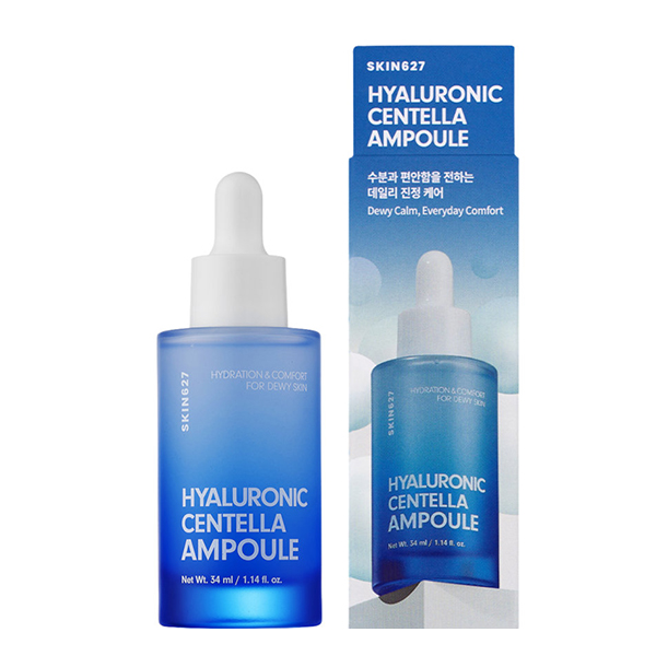SKIN627 Hyaluron Centella Ampoule to lekka, głęboko nawilżająca ampułka do twarzy, stworzona z myślą o skórze potrzebującej intensywnego nawodnienia, ukojenia i wzmocnienia bariery ochronnej.