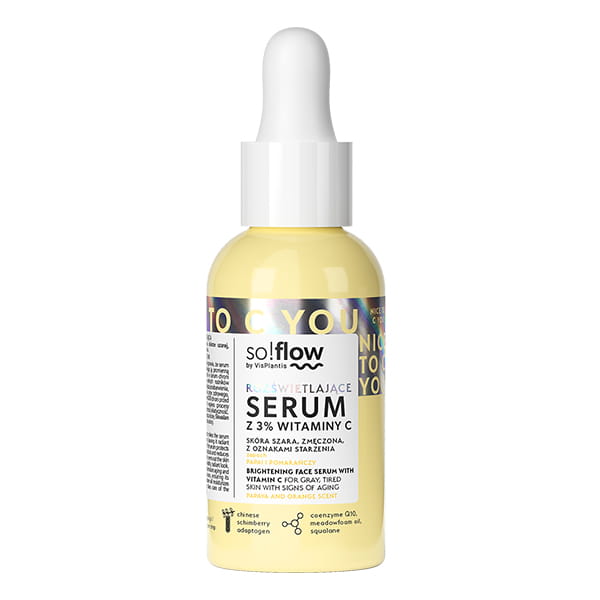 Olejkowe serum z 3% stabilnej witaminy C i koenzymem Q10 rozświetla, wyrównuje koloryt i nawilża. Odkryj promienną cerę - So!Flow.