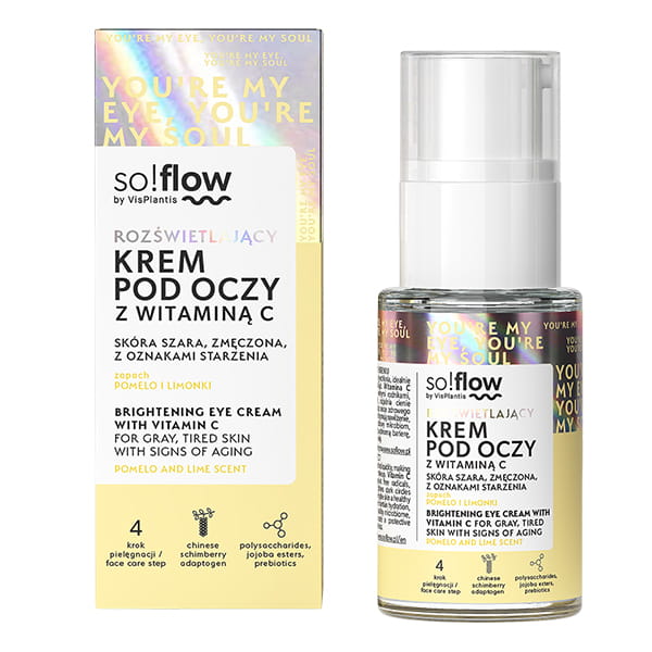 Rozświetlający krem pod oczy z witaminą C redukuje cienie i oznaki zmęczenia, jednocześnie nawilżając i wygładzając skórę. Sprawdź efekt świeżego spojrzenia - So!Flow.