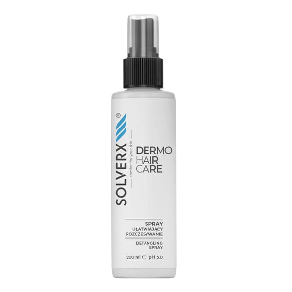 Lekki spray ułatwiający rozczesywanie, wygładzający włosy i wzmacniający ich strukturę dzięki innowacyjnym składnikom kondycjonującym. Spryskaj, rozczesz i ciesz się gładkimi włosami - Solverx Dermohair.
