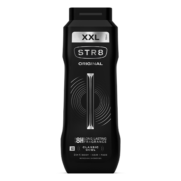 STR8 Original 3‑w‑1 to męski żel pod prysznic o wyrazistym, energetyzującym zapachu, zaprojektowany tak, by jednocześnie oczyszczać ciało, włosy i twarz.