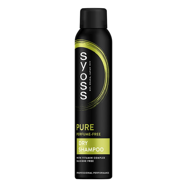 Wegański suchy szampon do włosów zapewniający odświeżenie fryzury w kilka minut, nie zawierający parabenów i silikonów, nie obciąża włosów i nie pozostawia widocznych śladów - Syoss Pure Dry Shampoo.