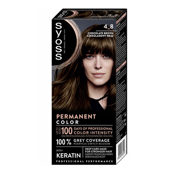 Odcień 4-8 czekoladowy brąz odpowiedni do włosów od jasnego brązu po ciemny brąz.