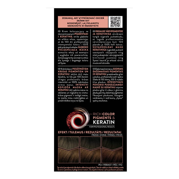 Farba do włosów Syoss permanent coloration zapewni ci profesjonalny efekt koloryzacji jak z salonu fryzjerskiego. Trwała koloryzacja Syoss z systemem przeciw uszkodzeniom, dzięki połączeniu technologii SalonPlex i keratyny, nada twoim włosom żywe i elektryzujące kolory o długotrwałej intensywności oraz ochroni twoje włosy przed uszkodzeniami.