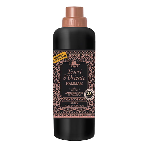 Skoncentrowany płyn do płukania tkanin, o oryginalnym zapachu kwiatu pomarańczy z olejem arganowym. Doskonale rozmiękcza włókna zapewniając wyjątkową miękkość ubrań - Tesori D'Oriente Hammam.