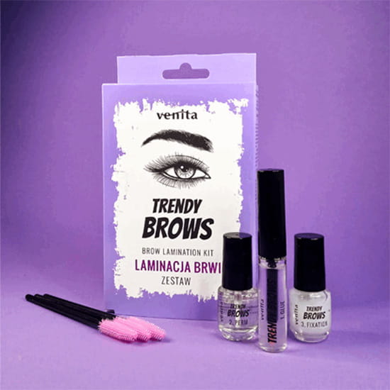 Perfekcyjnie uniesione i uporządkowane brwi laminacja z efektem zagęszczenia uzyskasz dzięki profesjonalnej laminacji Venita Trendy Brows.