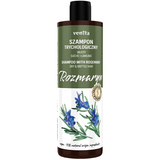 Trychologiczny szampon do włosów z ekstraktem z rozmarynu. Przeznaczony jest do codziennej pielęgnacji włosów suchych i łamliwych. Nie wysusza, przywraca zdrową równowagą twojej skóry głowy - Venita