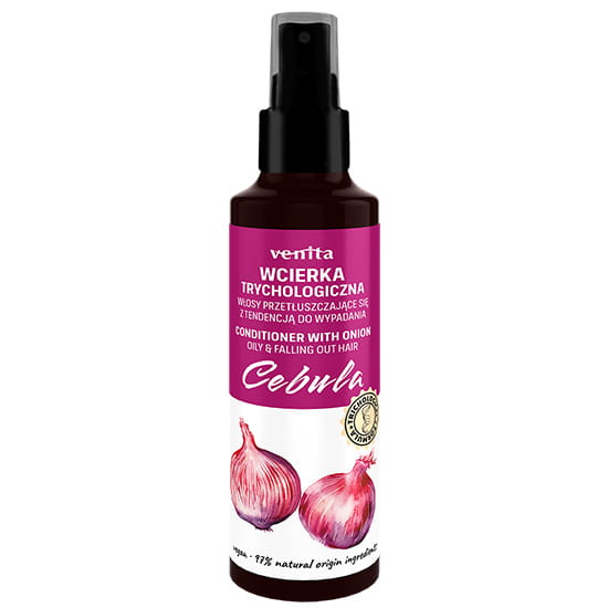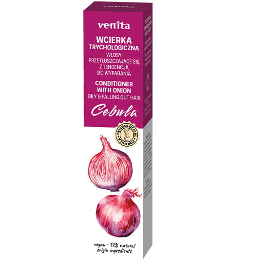 Trychologiczna wcierka do włosów z ekstraktem z cebuli. Przeznaczony jest do codziennej pielęgnacji włosów przetłuszczających się z tendencja do wypadania. Nie wysusza, przywraca zdrową równowagą twojej skóry głowy - Venita.