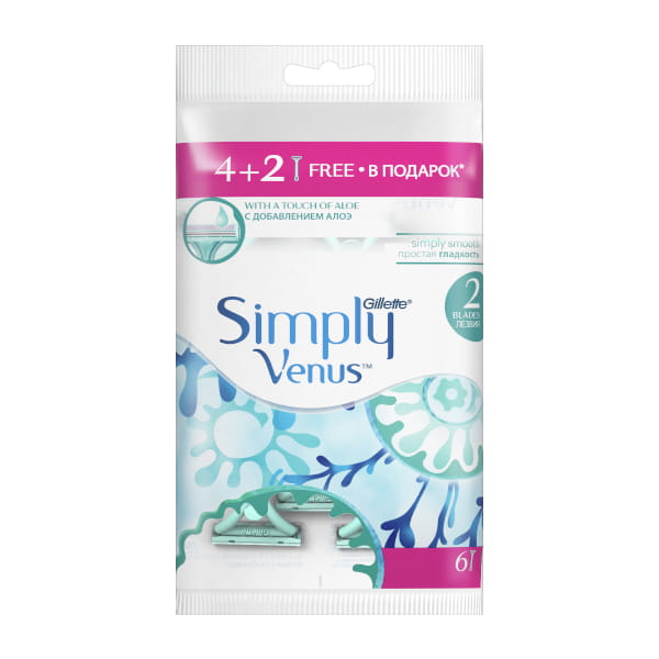 Jednorazowa maszynka do golenia damska, posiada 2 ostrza i pasek Moisture Rich, który zapewnia gładkie, łatwe i satysfakcjonujące golenie - Gillette Venus Simply 2.