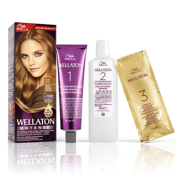 Krem koloryzujący to intensywny i trwały kolor, a także perfekcyjne pokrycie siwych włosów - Wella Wellaton Orzech Laskowy 7/3.