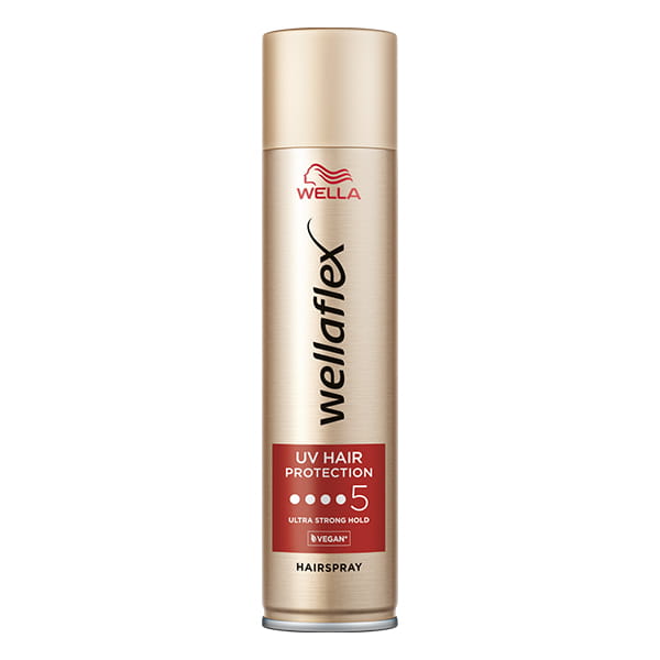 Utrwalający lakier do włosów do stylizacji fryzury na gorąco, zawierający ochronna technologię, która chroni włosy przed szkodliwymi czynnikami zewnętrznymi, zapewnia naturalną i elastyczną fryzurę bez efektu obciążającego - Wellaflex Hair Protection.